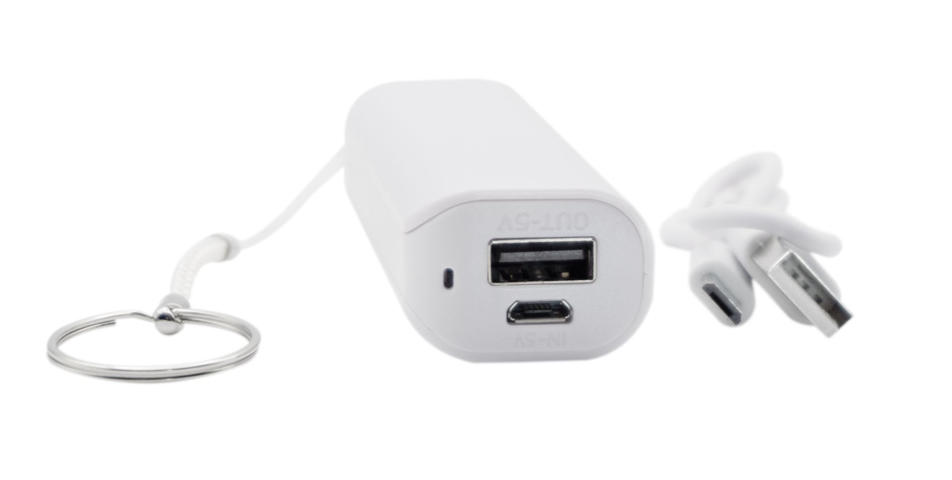 Die mitgelieferte Powerbank reicht vollgeladen für ca. 2 Betriebsstunden.